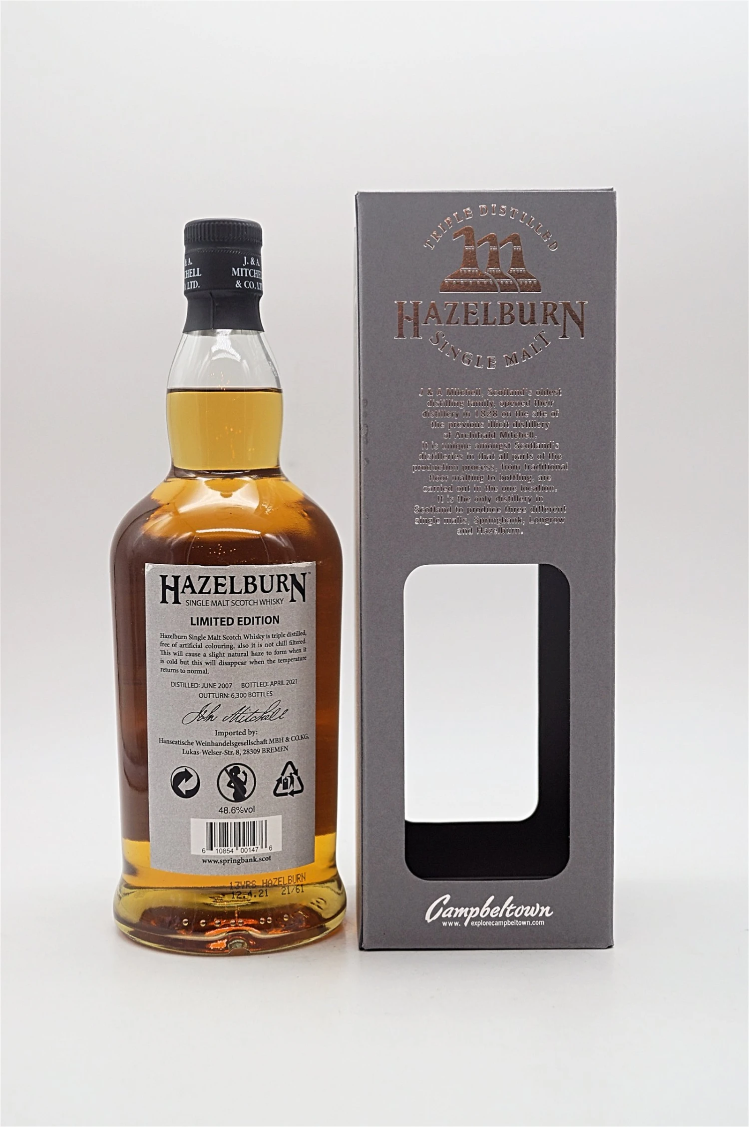 Seit 1997 brennt Springbank den dreifach destillierten Hazelburn. Hazelburn ist in der Regel in einer Age Statement Variante von 8 – 12 Jahren verfügbar, wie bei den Geschwistern kommen hin und wieder limitierte Sonderabfüllungen auf den Markt. Auf Grund der kleinen Produktion kommt es aber immer wieder zu Engpässen.