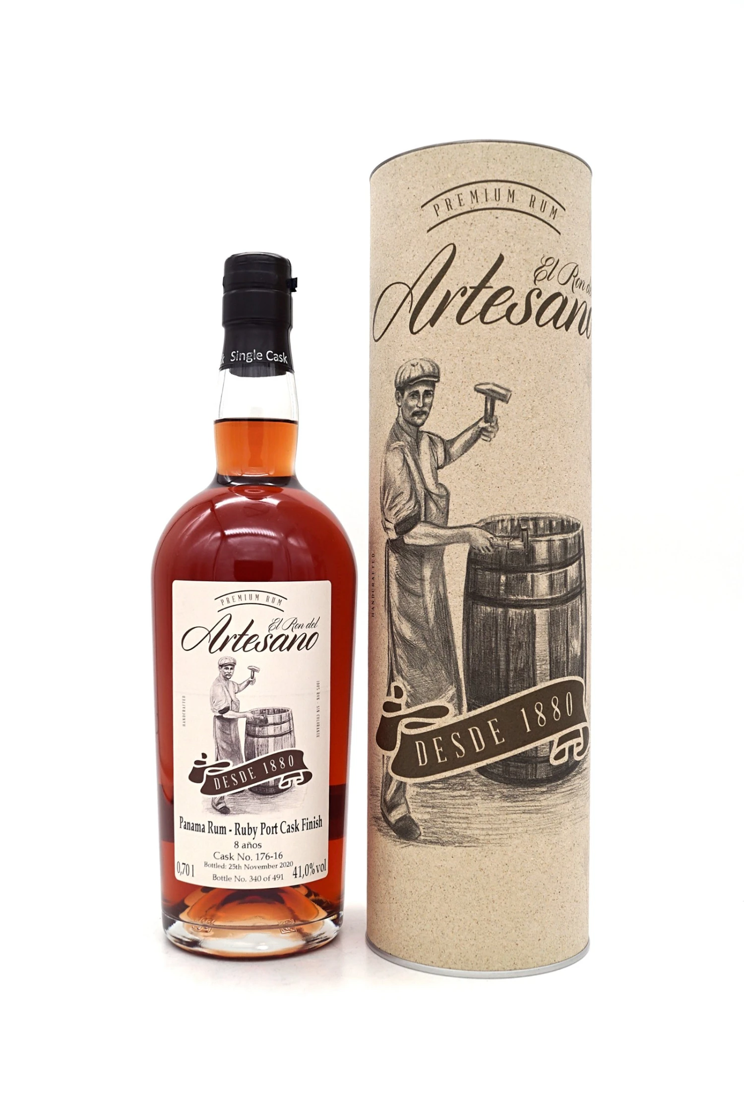 Der Rum Artesano Ruby Port Cask Finish reifte zuerst für 6 Jahre in einem Ex- Bourbon Cask, bevor er weitere 39 Monate in einem Ruby Port Cask aus Portugal nachgereift wurde. Dieses Fass verleigt ihm auch seine satte Farbe und seine Fruchtigkeit in der Nase. Doch wie immer ist er nicht künstlich gefärbt, nicht gezuckert und das Fass war bei Befüllung komplett entleert. Direkt nach dem Einschenken riecht man Limette und Orange…doch wo ist das Port Cask. Erst mit ein wenig Luft kommt die Portnote zum Vorschein und zeigt feine Noten von vollreifer dunkler Kirsche und etwas Pflaume.