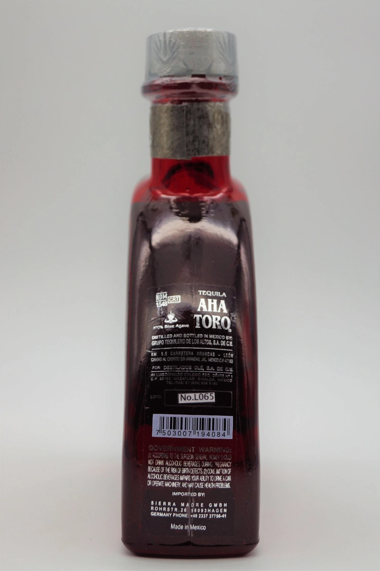 Das Zentrum der Brennerei ist die Hacienda „El Olvido“, wo seit fast einem Jahrhundert traditionell Tequila produziert wird. Die Agaven für Aha Toro stammen von Feldern aus dem Hochland auf einer Höhe von 1800 bis 2000 Metern. Bei der Herstellung wird Wert auf Tradition gelegt: Bis heute wird zur Gewinnung des Agavensaftes das typische steinerne Mühlrad, die Tahona, eingesetzt.Nach der sorgfältigen Destillation in kupfernen Pot Stills lagert Aha Toro in ehemaligen Jack Daniel’s-Fässern aus amerikanischer Weißeiche mit einem Fassungsvermögen von nur 200 Litern.